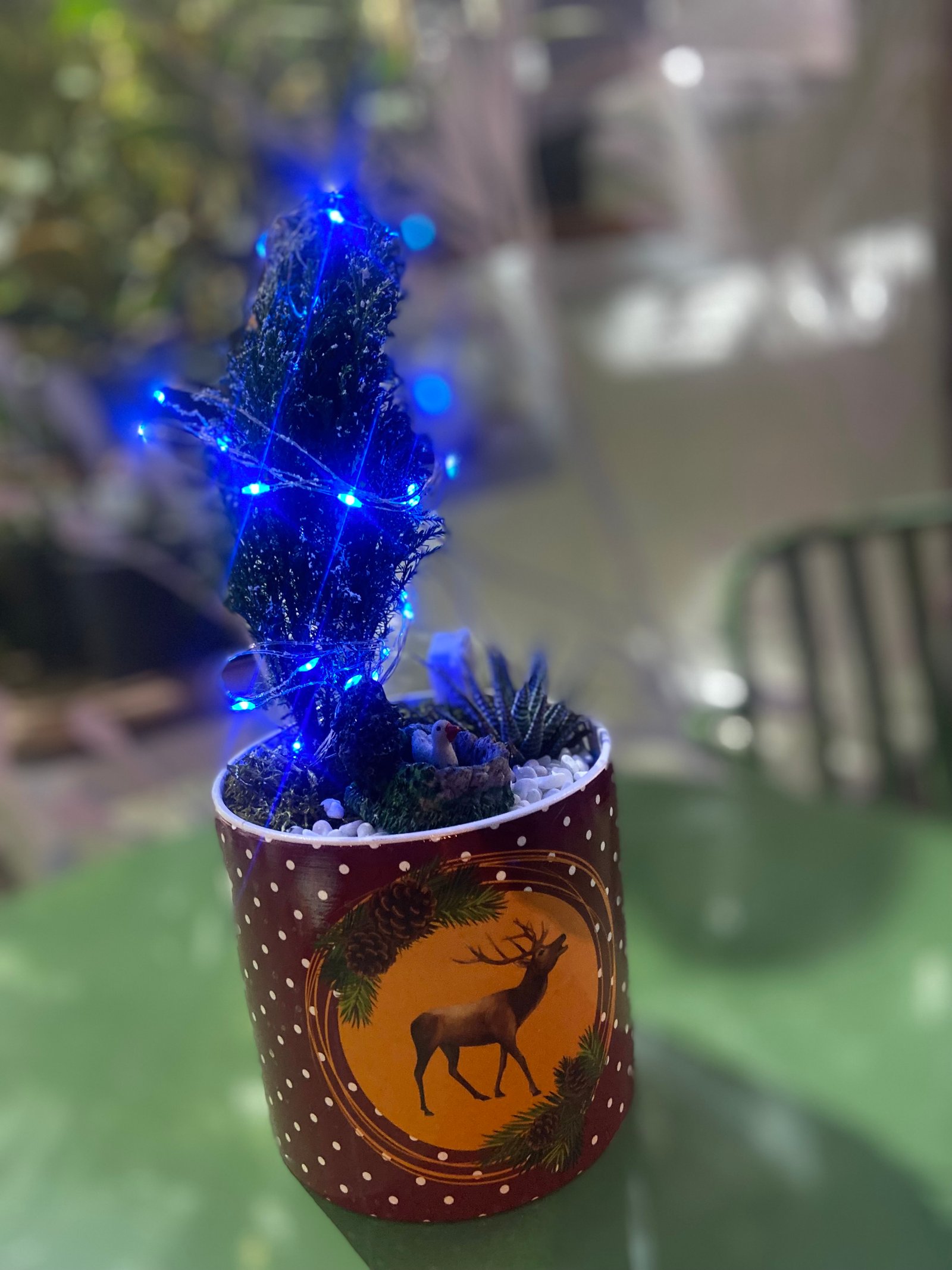 🎄 Işıklı Mini Yılbaşı Aranjmanı – Seramik Saksıda Özel Tasarım