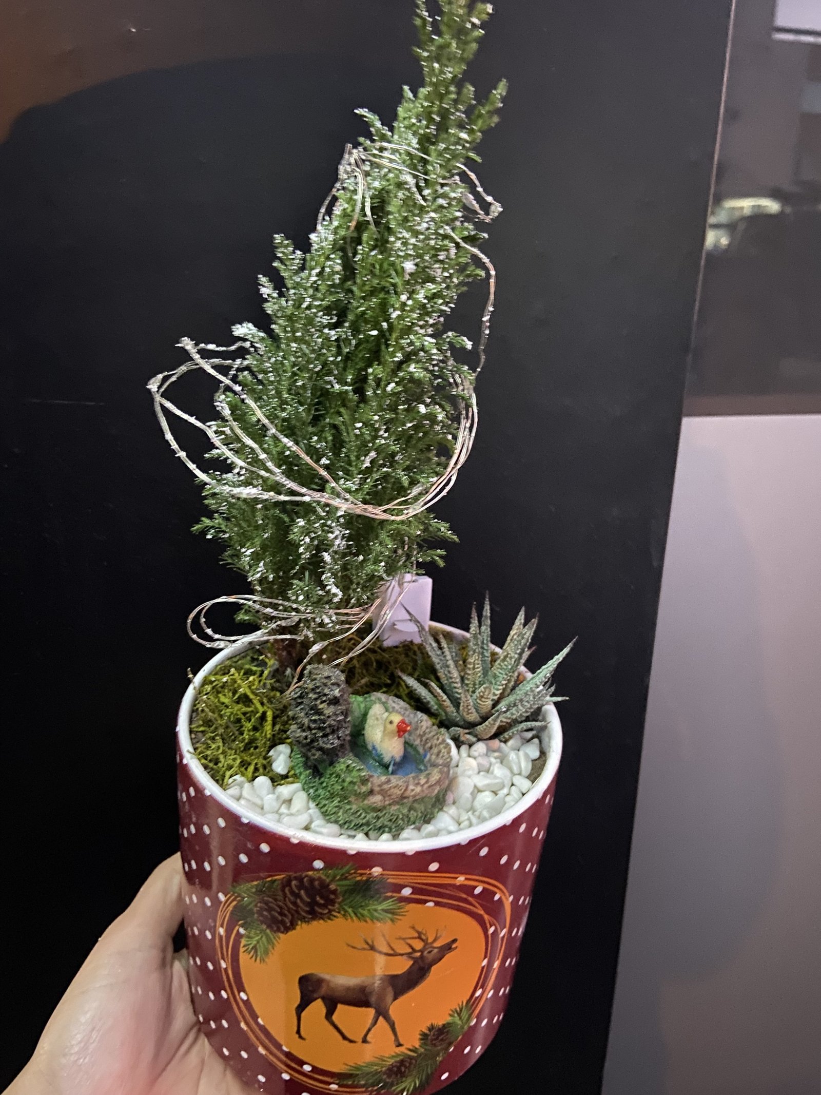 • Mini çam ağacı ve sukulent detaylı özel tasarım