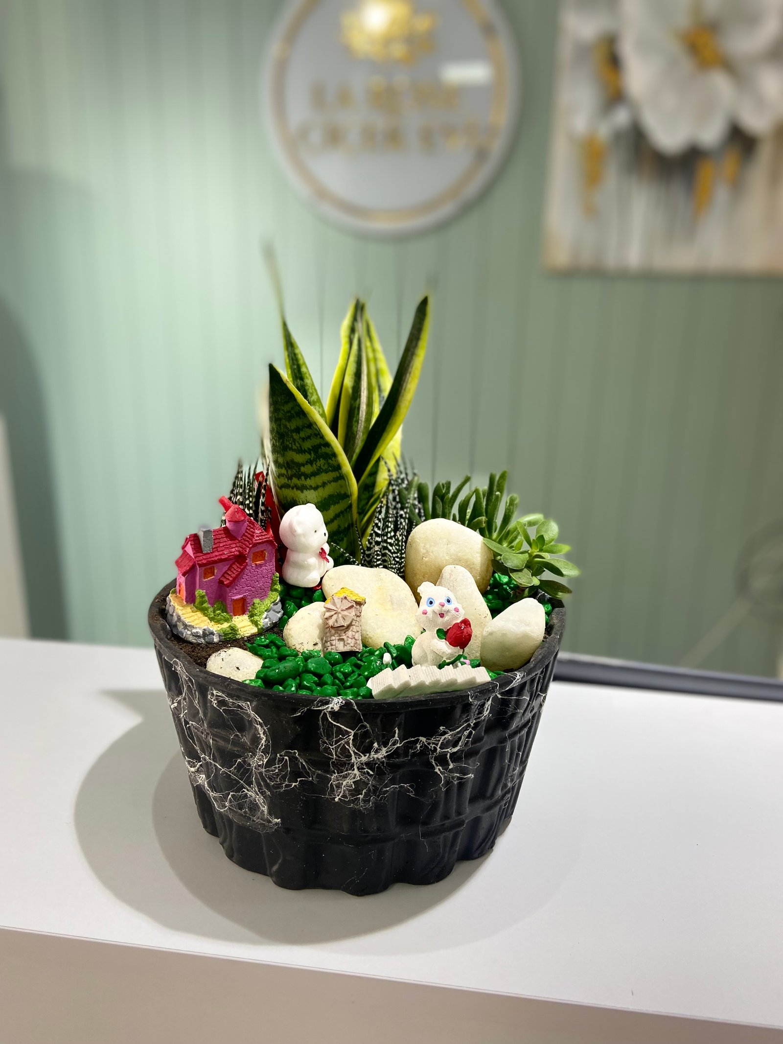 Kaktüsler, sukulentler ve zarif beyaz çiçeklerle hazırlanmış bu aranjman, hem şık hem de sade bir duruşla her ortama uyum sağlar 🤍