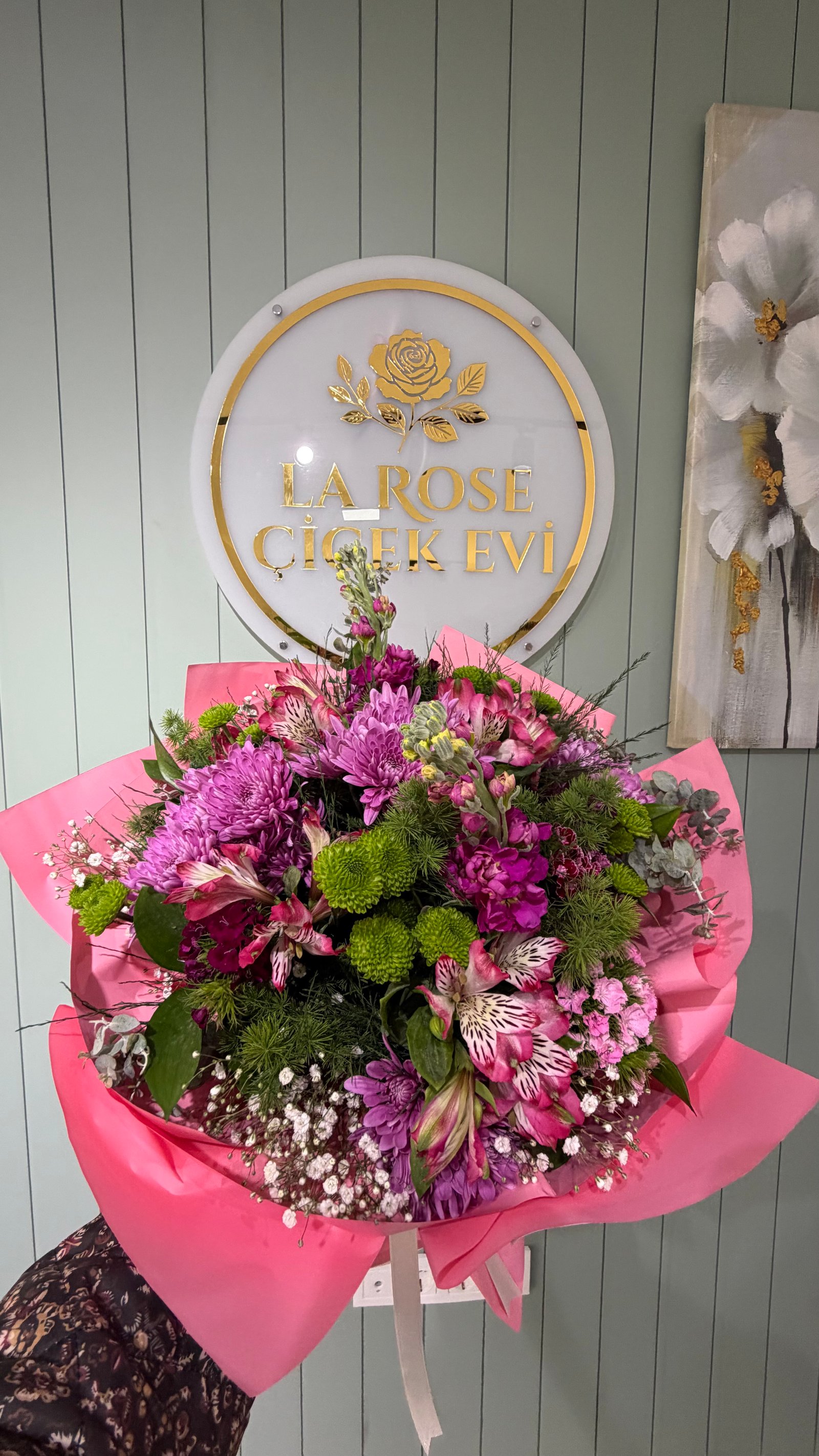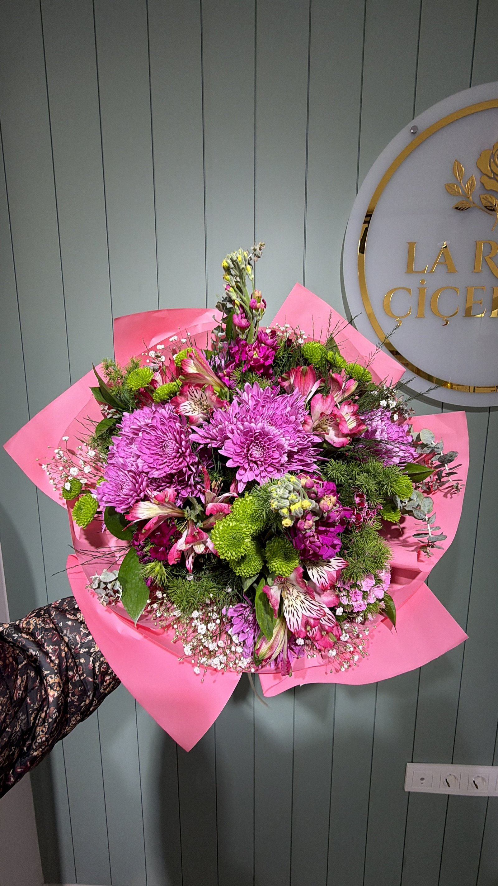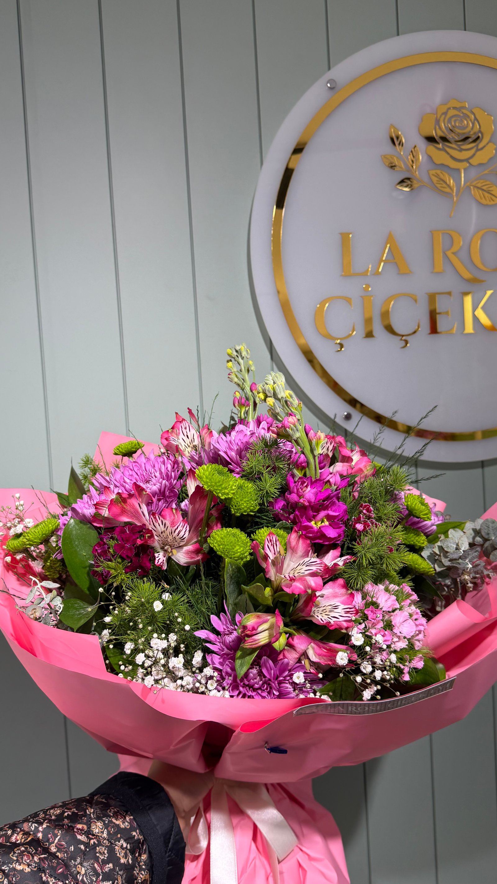 Mevsim çiçekleri ve şebboyla hazırlanmış özel buketimiz renkler stok durumuna göre değişebilir.