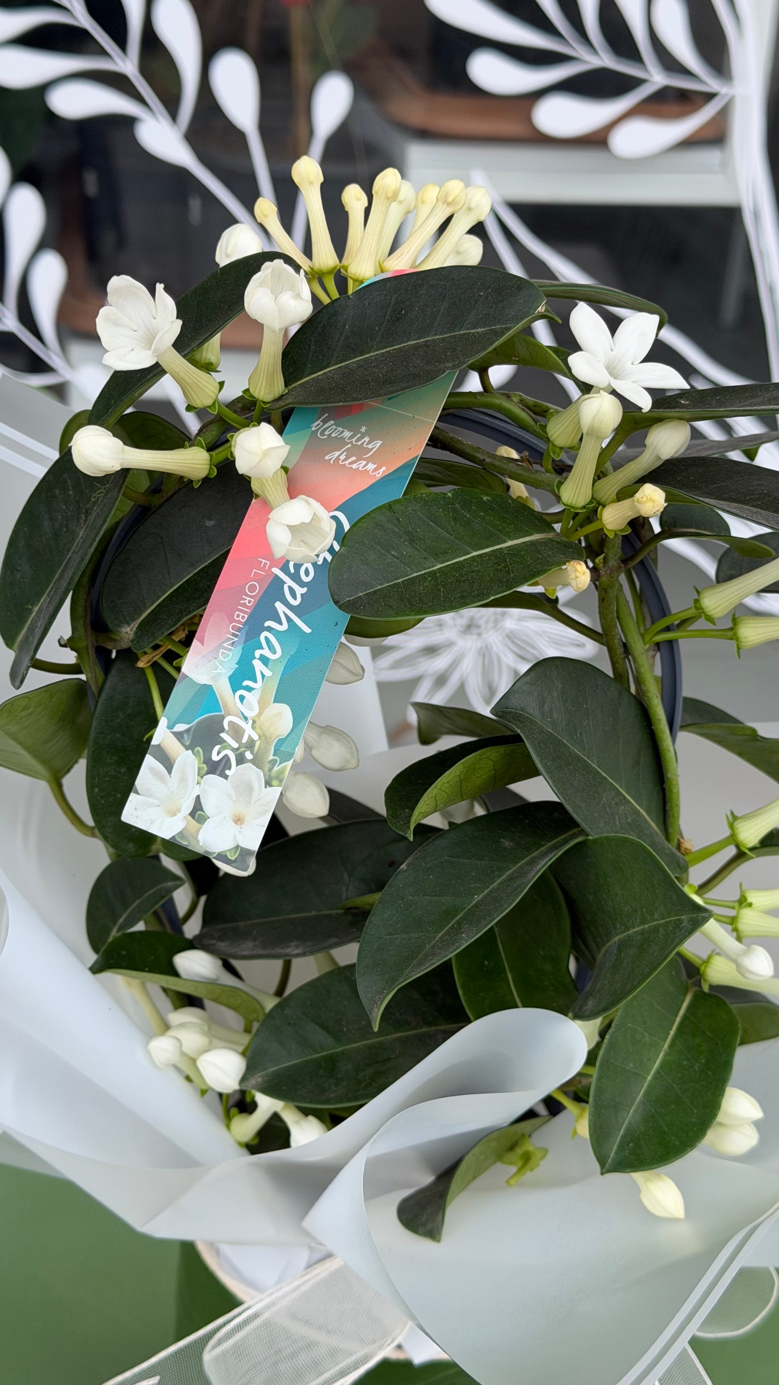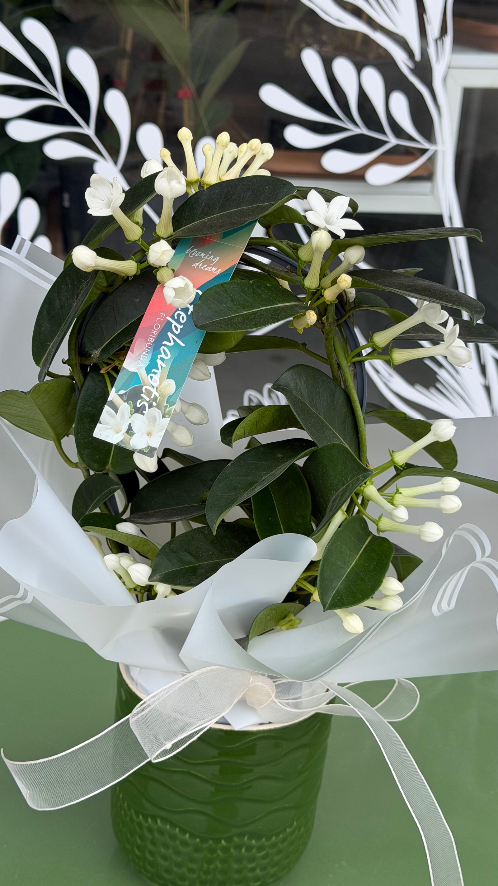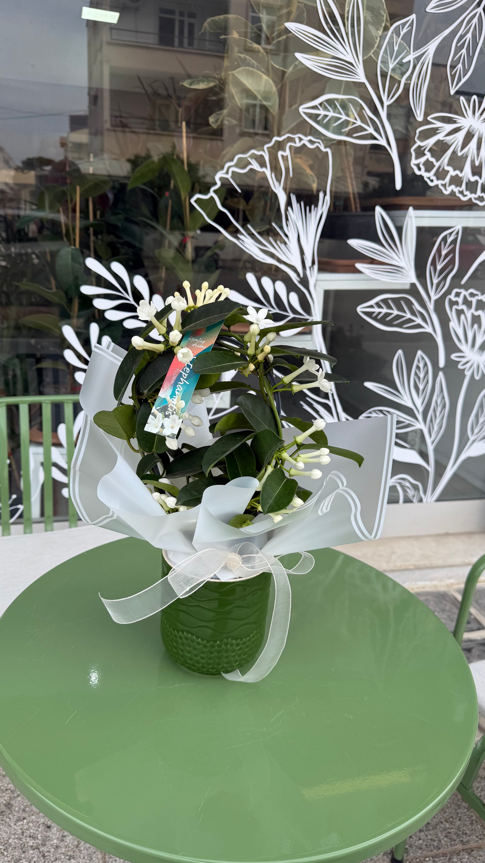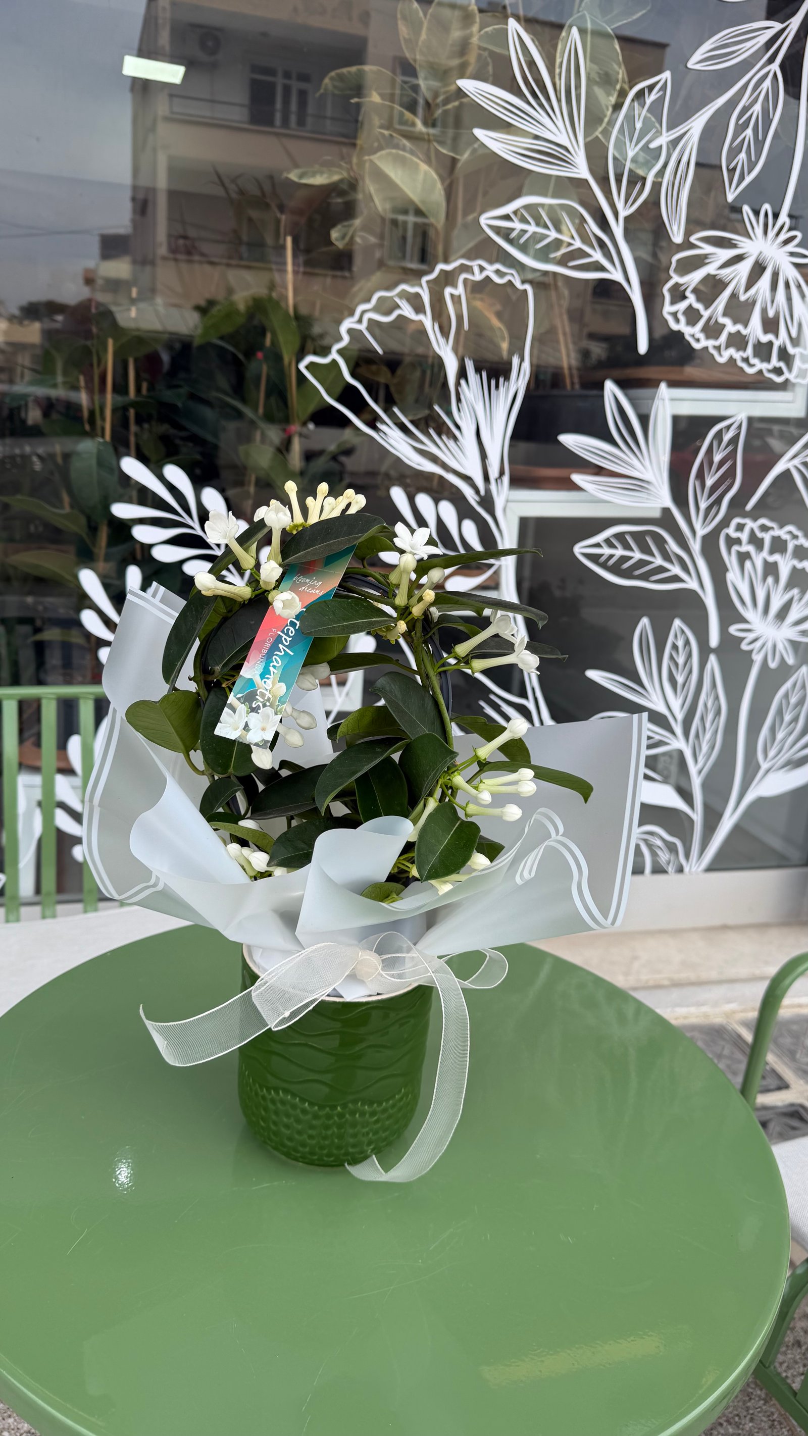 Zarafetin ve doğallığın en güzel hali… 🤍 Mis kokulu Stephanotis floribunda (Madagaskar Yasemini), şık seramik saksı ve özenli paketleme ile hazırlanan özel bir aranjmandır. Parlak yeşil yaprakları ve zarif beyaz çiçekleriyle bulunduğu ortama ferahlık ve şıklık katar. ✨ Ürün Özellikleri • Canlı Stephanotis (Madagaskar Yasemini) bitkisi • Dekoratif yeşil seramik saksı • Özel ambalaj ve kurdele süsleme • Uzun süre kalıcı ve hoş kokulu çiçekler 🎁 Hangi durumlar için uygun? • Doğum günü hediyesi • Kadınlar günü • Yeni iş / tebrik • Ev ve ofis dekorasyonu • Sevdiklerinize zarif bir sürpriz
